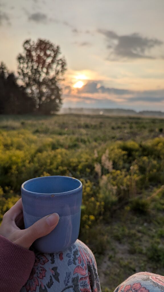 Robię absolutnie zwykłe i przyziemne (ale jakie przyjemne!) rzeczy. Jem, gotuję, leżę, oglądam wschody i zachody słońca. Jeżdżę rowerem, bawię się w piaskownicy. Medytuję, praktykuję jogę, zbieram i suszę zioła.
