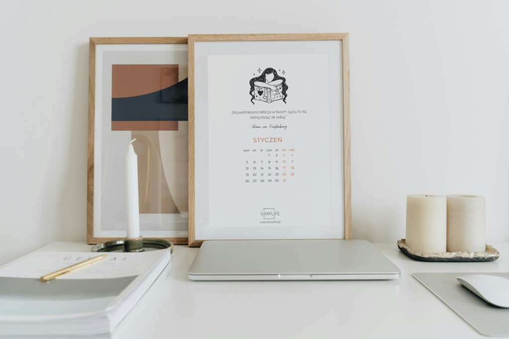 Kalendarz 2026 jest zapisany w formacie A4, więc śmiało możesz drukować go po prostu na domowej drukarce. A potem powiesić na ścianie w ramce lub spiąć klipsem do papieru.