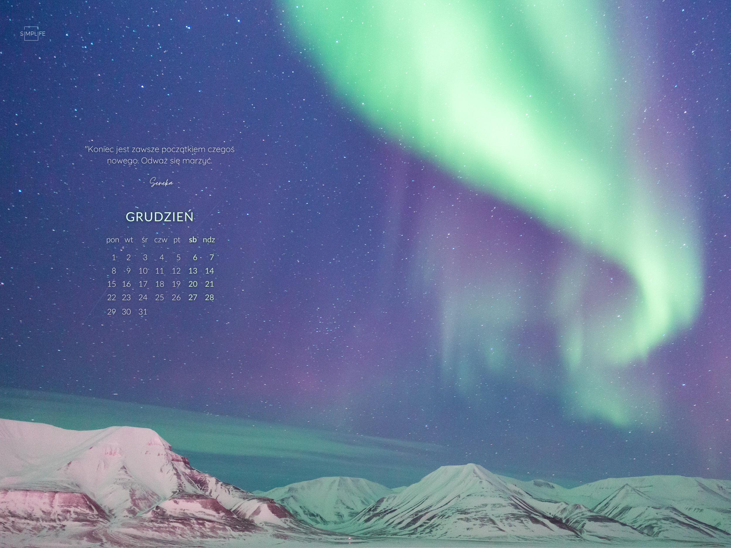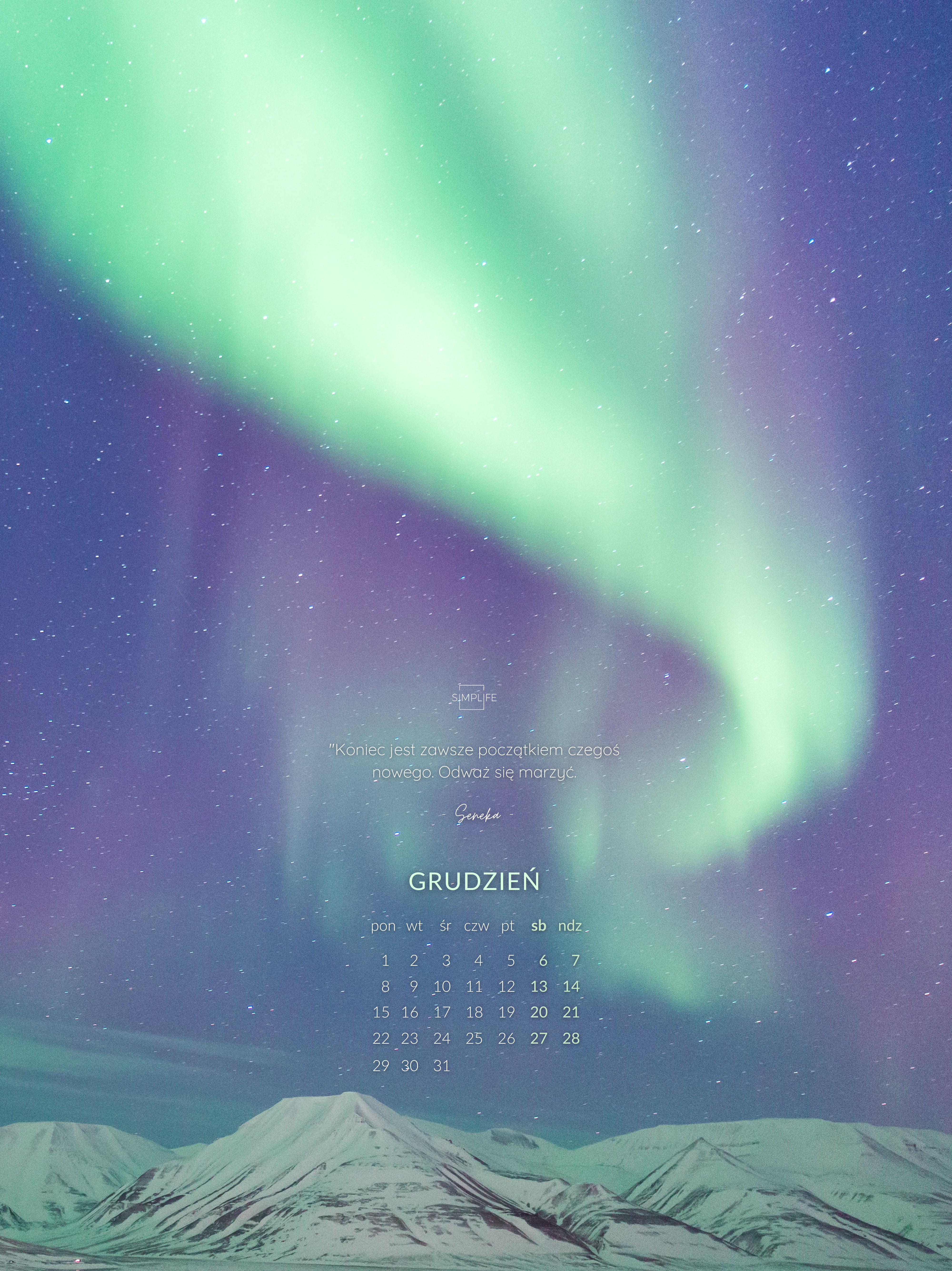 Aby pobrać – kliknij na link z tapetą w wybranym rozmiarze. Tapeta kalendarz księżycowy 16×9 Kalendarz KsiężycowyPobierz 3×4 Kalendarz KsiężycowyPobierz tel Kalendarz KsiężycowyPobierz Tapeta: Świąteczny kotek 16×9 Świąteczny kotekPobierz 3×4 Świąteczny kotekPobierz tel Świąteczny kotekPobierz Tapeta: Choinka 16×9 ChoinkaPobierz 3×4 ChoinkaPobierz tel ChoinkaPobierz Tapeta: Zorza polarna 16×9 Zorza polarnaPobierz 3×4 Zorza polarnaPobierz tel Zorza polarnaPobierz